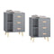 - [AMPLIO ESPACIO DE ALMACENAMIENTO x2]: Cada mesita de noche delgada cuenta con 2 prácticos cajones y un estante abierto. En total, el set ofrece 4 cajones y 2 estantes para guardar libros, gafas, mandos a distancia y otros objetos esenciales.