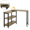 - Escritorio giratorio: Nuestra mesa de ordenador se puede girar 360° como quiera. Puede ponerla en la forma de ¨L¨, o poner el estante bajo la mesa, o desplegarla como una mesa grande. Con este ventaje, este escritorio moderno es una opción maravillosa para un piso pequeño, una oficina o un dormitorio.