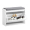 - Material: Tampo em madeira MDF classe E1 lacado a branco, almofada em poliéster tipo linho e esponja, peças em metal e plástico. Dimensões: C 60 x P 26 x A 46 cm. Capacidade máxima: 150 kg.